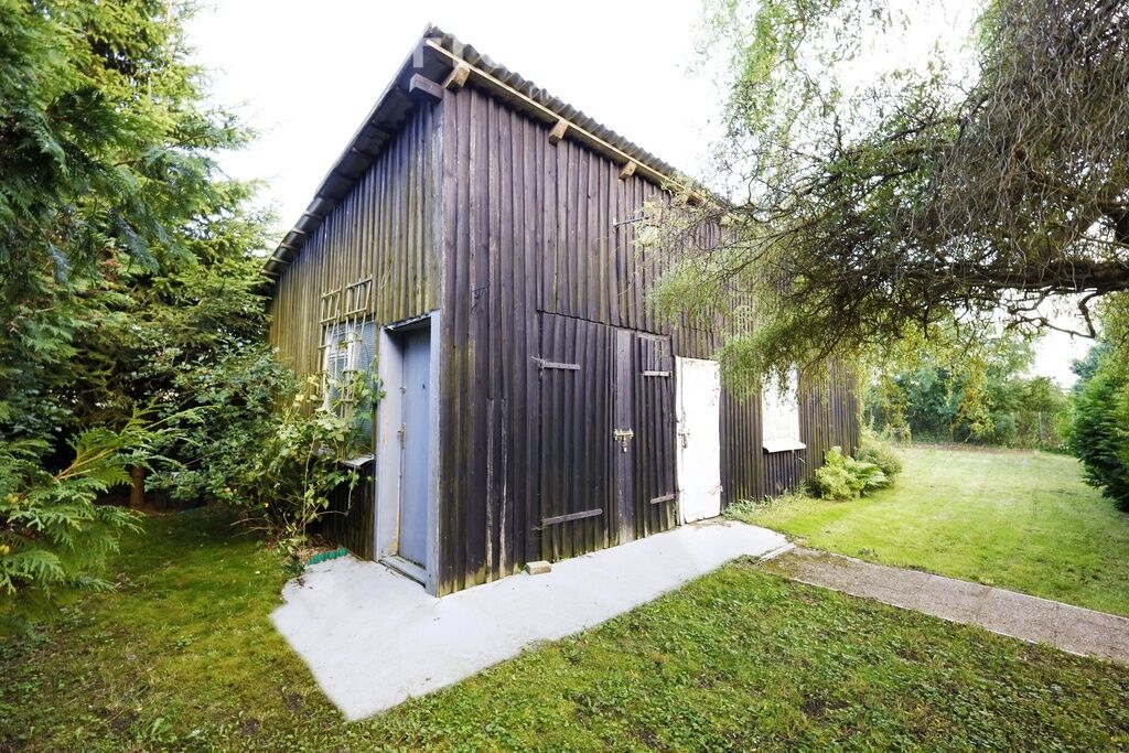 Na jednej z działek stoi drewniany budynek gospodarczy, idealny na